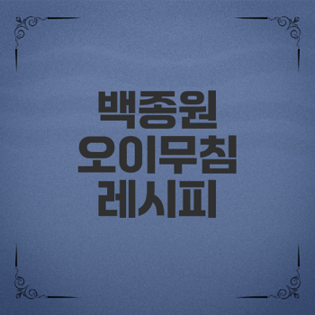 "따라 하기 쉬운 백종원 오이무침, 꾸준히 사랑받는 데는 다 이유가 있습니다."