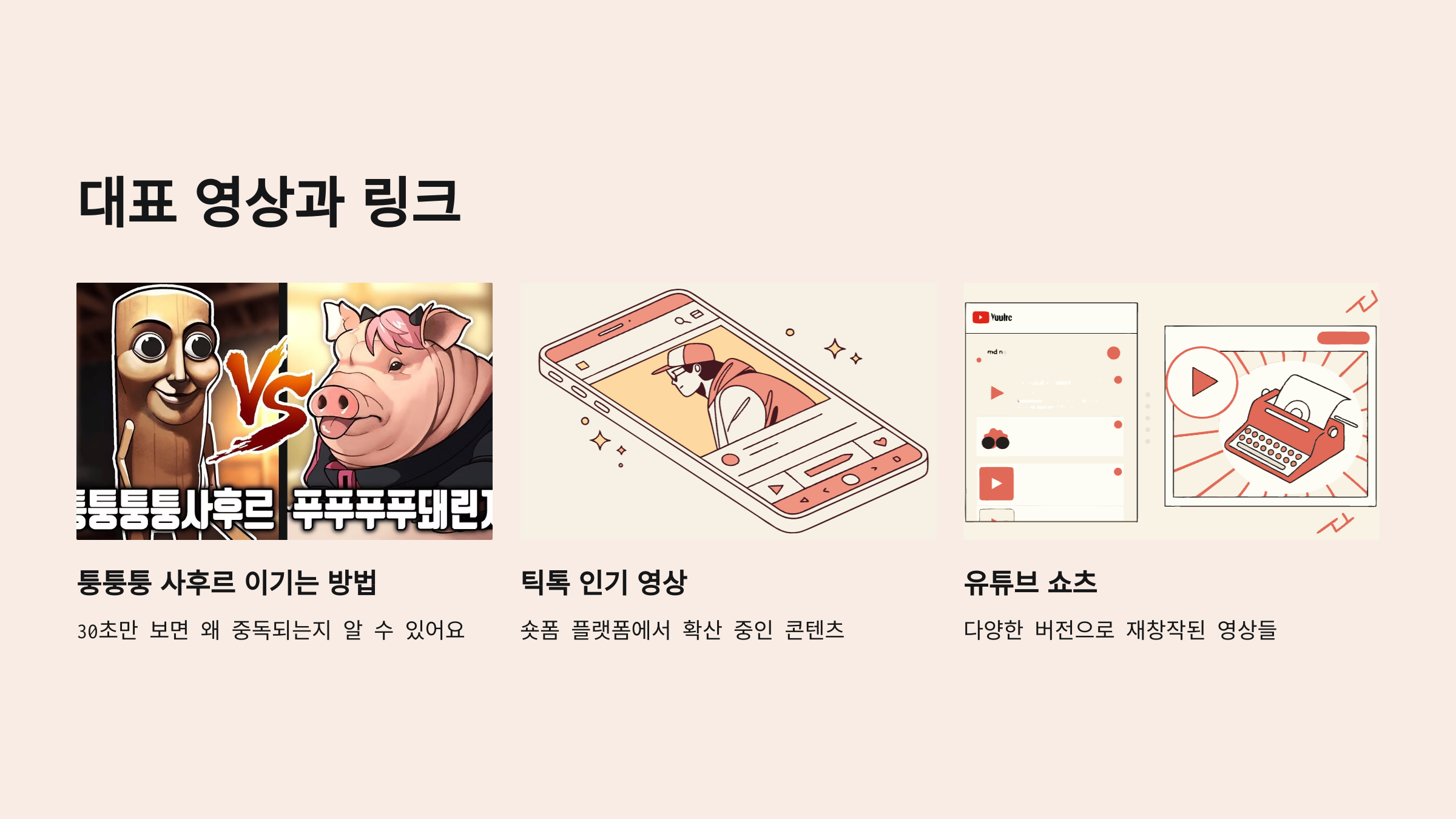 아직도 '퉁퉁퉁 사후르'가 뭔지 잘 모르겠다면 아래 대표 영상 링크를 확인해보세요. 30초만 보면 왜 중독되는지 알 수 있어요. 🎬