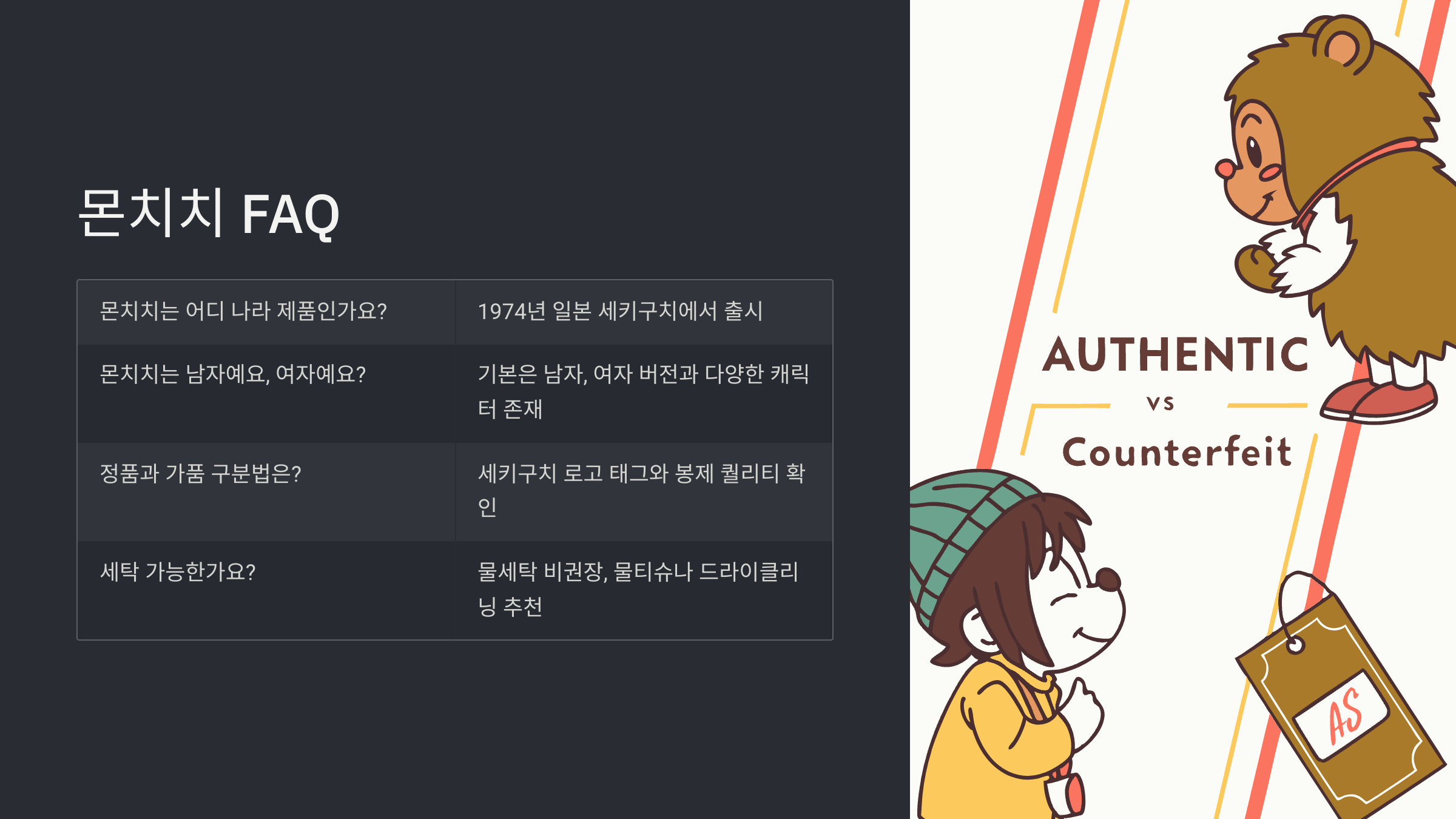 Q3. 정품 몬치치와 가품은 어떻게 구분하나요?