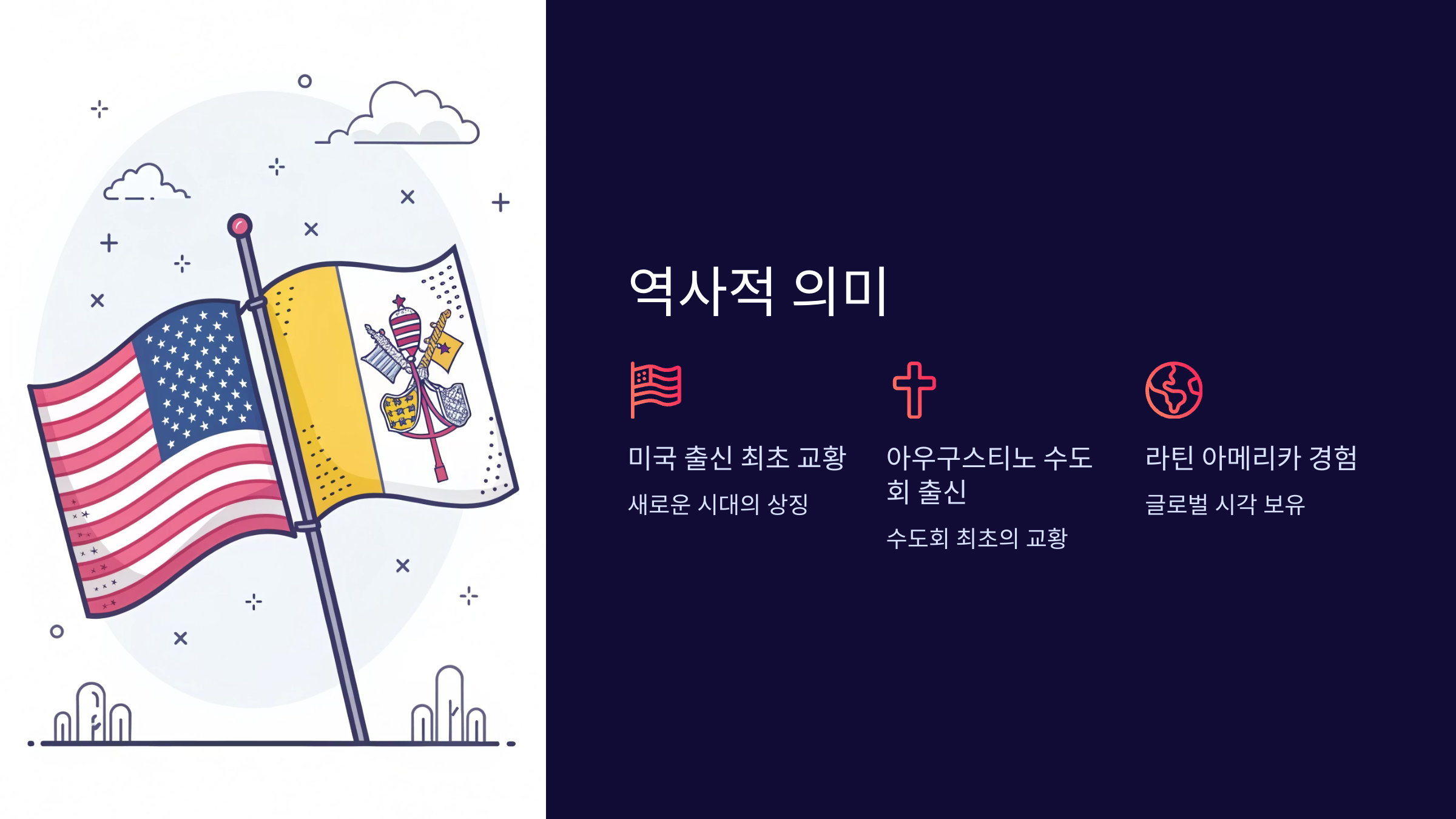 그의 이러한 배경은 이후 교황으로서의 행보에도 큰 영향을 미쳤으며, 많은 사람들에게 신뢰와 존경을 받는 지도자로 자리잡게 된 이유 중 하나입니다. 특히, 미국 출신 교황으로서의 상징성은 그가 글로벌 교회에서 새로운 변화를 이끌어갈 수 있는 중요한 자산이 되었습니다.