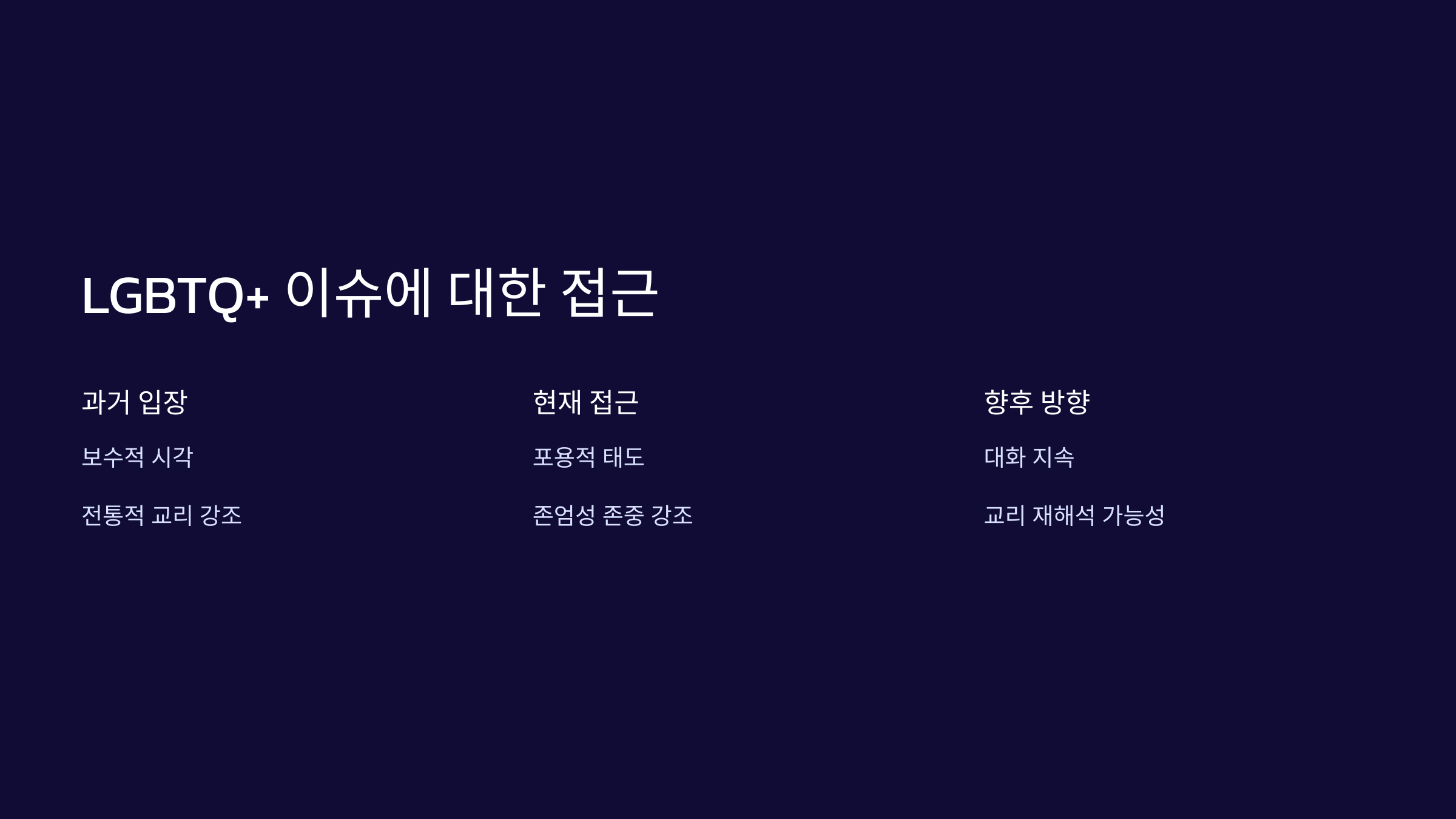 - 🏳️🌈 LGBTQ+ 이슈 - 레오 14세는 동성애 문제에 대해 복잡한 입장을 가지고 있습니다. 과거에는 보수적인 시각을 보였지만, 최근에는 보다 포용적인 접근을 시도하고 있으며, 모든 인간은 존엄성을 지닌 존재로 존중받아야 한다는 기본 입장을 유지하고 있습니다. 다만, 교회의 공식 교리 변경은 아직 명확하지 않은 상태입니다.