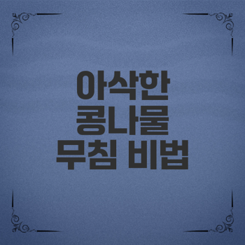 매일 먹어도 질리지 않는 콩나물 무침, 오늘 저녁 반찬으로 바로 도전해보세요! 쉽고 빠른 마무리 팁으로 맛까지 최고인 콩나물 무침, 이제 여러분의 밥상에서 빛을 발할 것입니다.