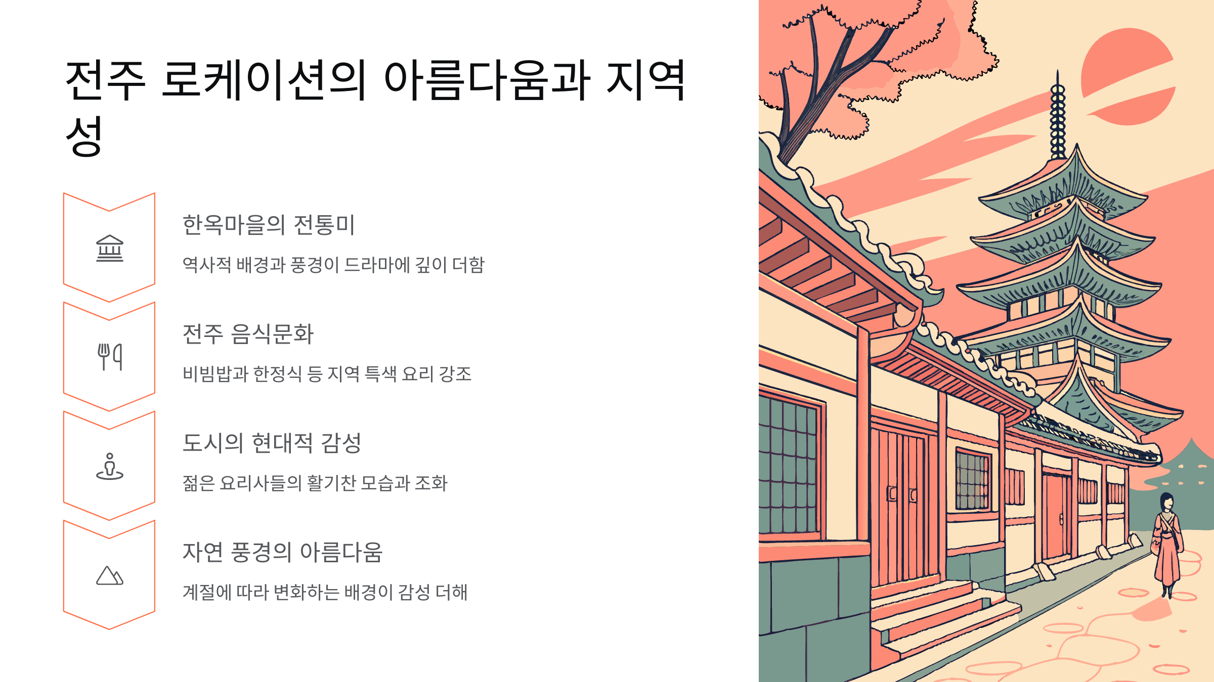 “로케이션이 이미 반은 성공했다는 말이 나올 정도로, 전주의 미장센이 빛나는 작품입니다.” – 드라마 관계자 인터뷰