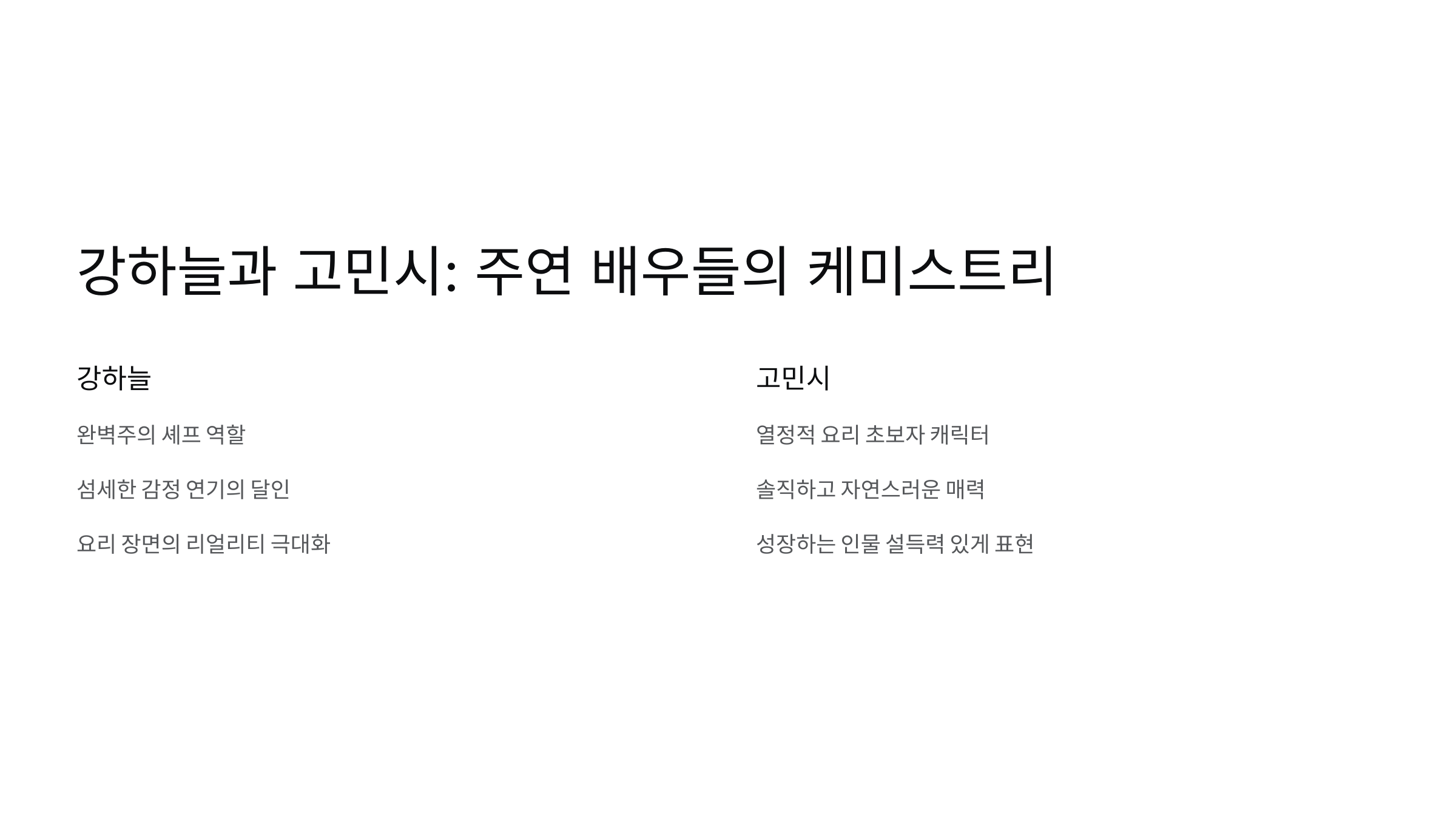 특히 강하늘과 고민시라는 조합만으로도 시청자들의 관심이 집중되고 있어요. 두 배우의 감성 연기가 빚어낼 요리 같은 이야기, 지금부터 자세히 살펴볼게요!