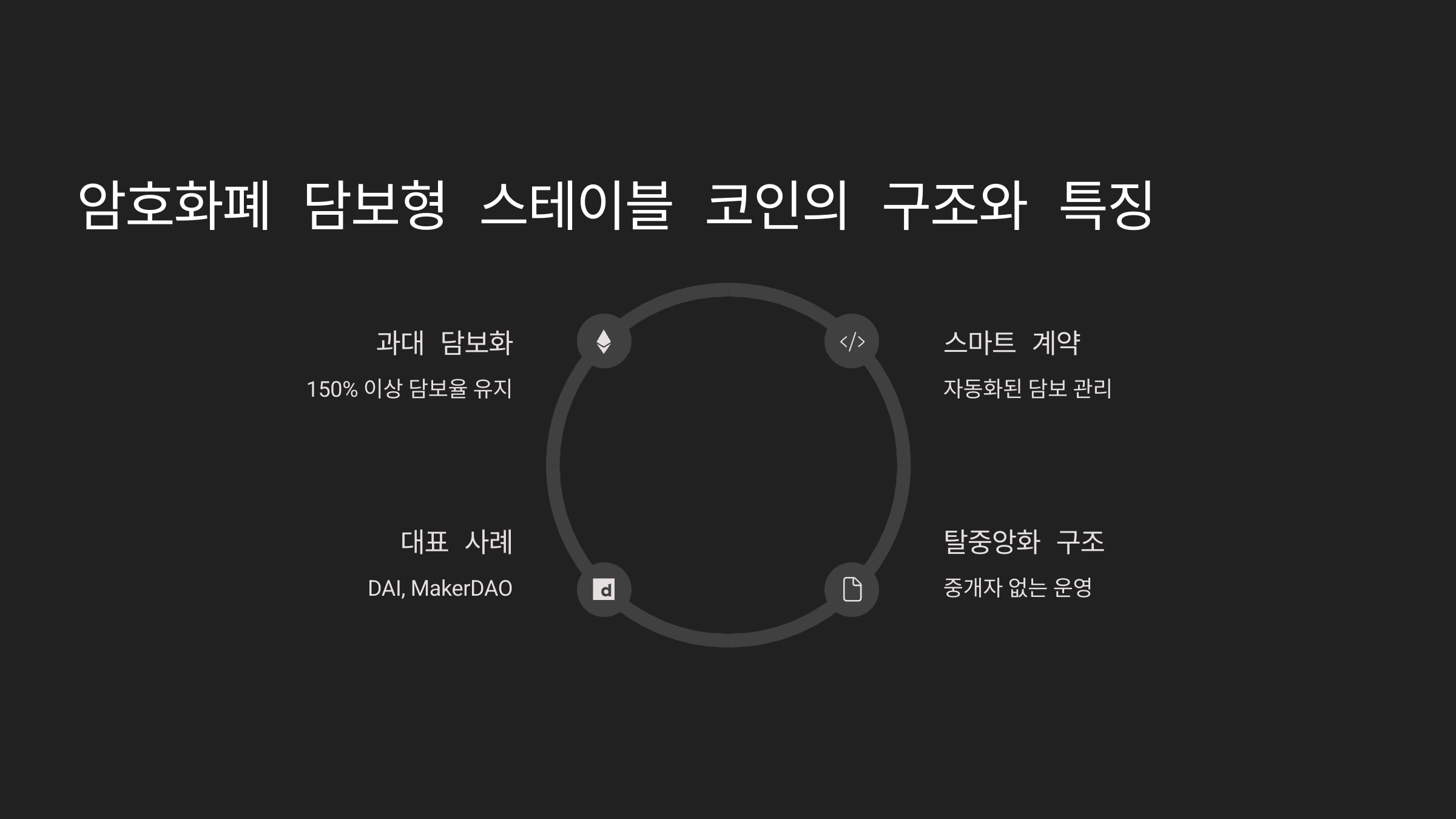 “암호화폐 담보형은 탈중앙화를 지향하면서도 스테이블 코인의 기능을 유지하려는 실험적 시도입니다.” – 블록체인 개발자 포럼