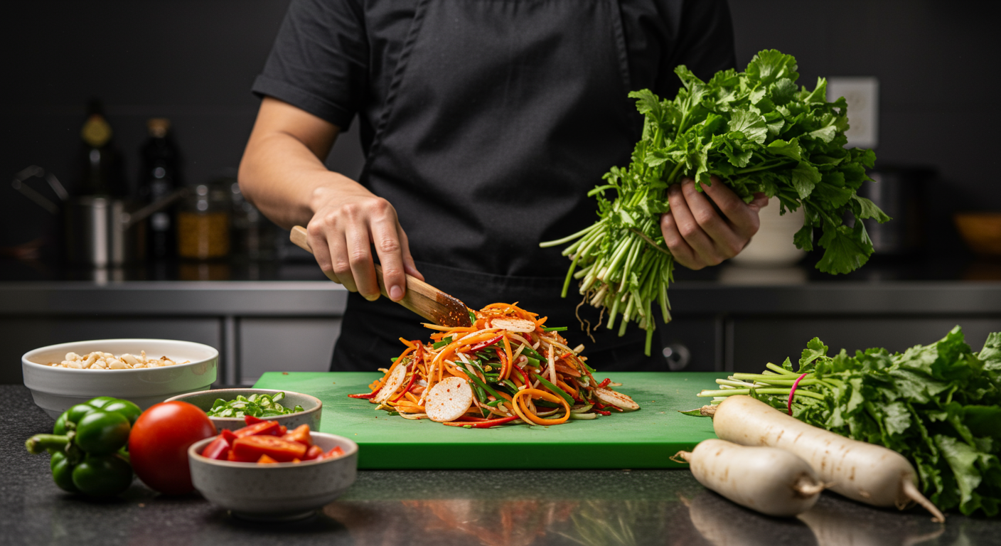 "무생채는 양념장이 반이에요. 특히 액젓이랑 매실액 비율이 정말 중요해요. 저는 양념장 만들고 냉장고에 잠깐 넣어뒀다가 사용하는데, 훨씬 맛있어요!" - 요리 블로거 이지혜 씨