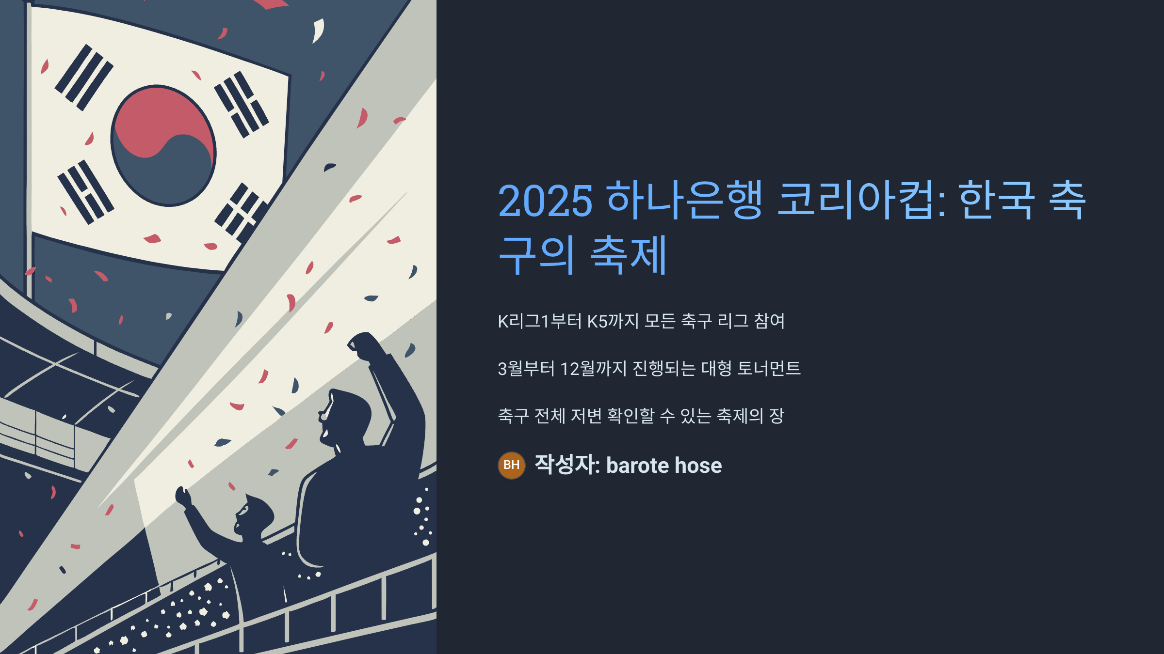 “코리아컵은 단순한 대회가 아니라, 한국 축구 전체의 저변을 확인할 수 있는 축제 같은 무대죠.” — 축구 해설가 김태우