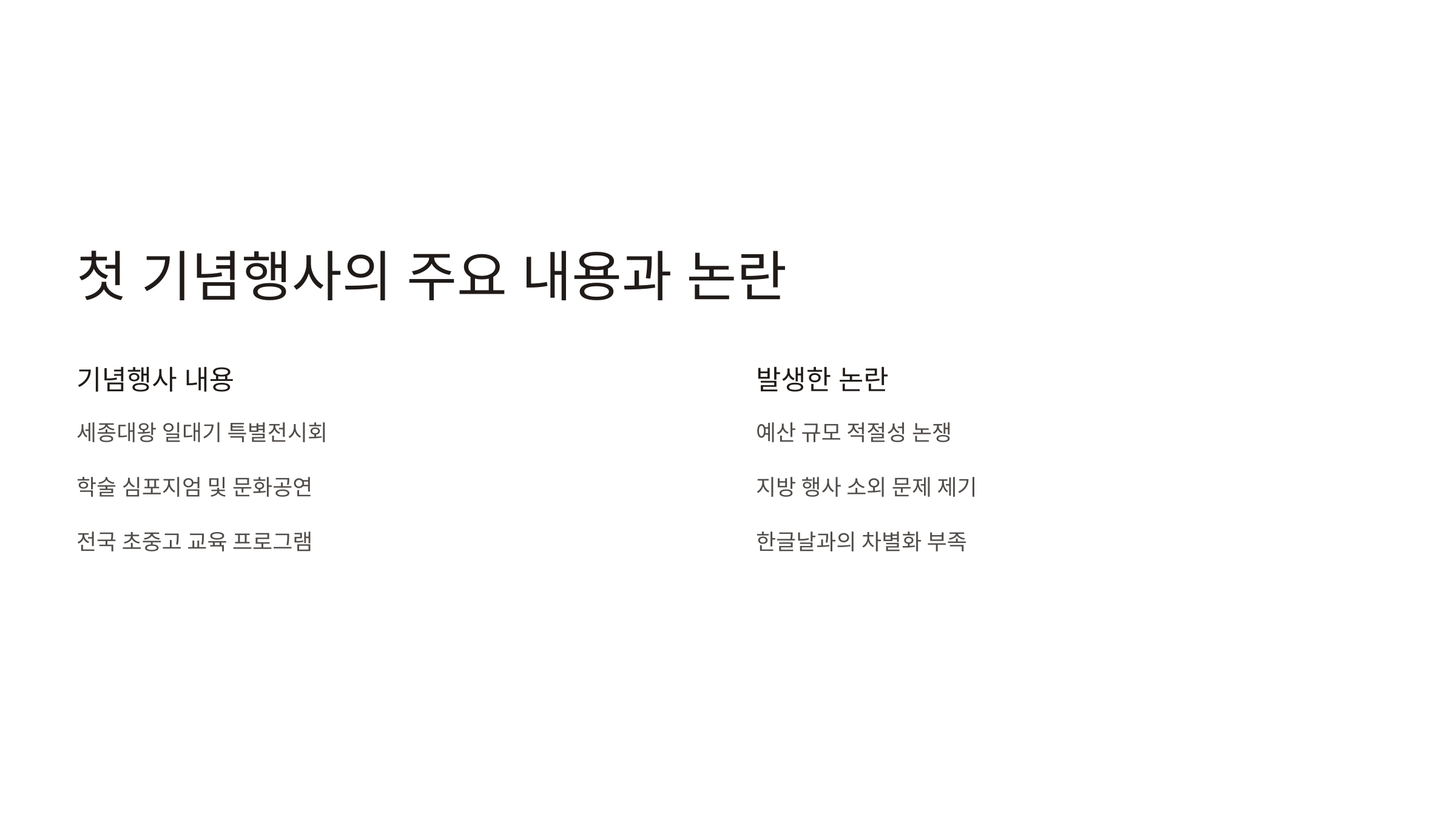 그럼에도 불구하고 많은 시민들과 관람객들은 세종의 정신을 되새기는 뜻깊은 시간이었다는 반응을 보였어요. 첫 단추가 조금 어긋났지만, 앞으로의 행사에서 더 정교한 준비와 문화적 깊이를 기대해볼 수 있을 것 같아요.