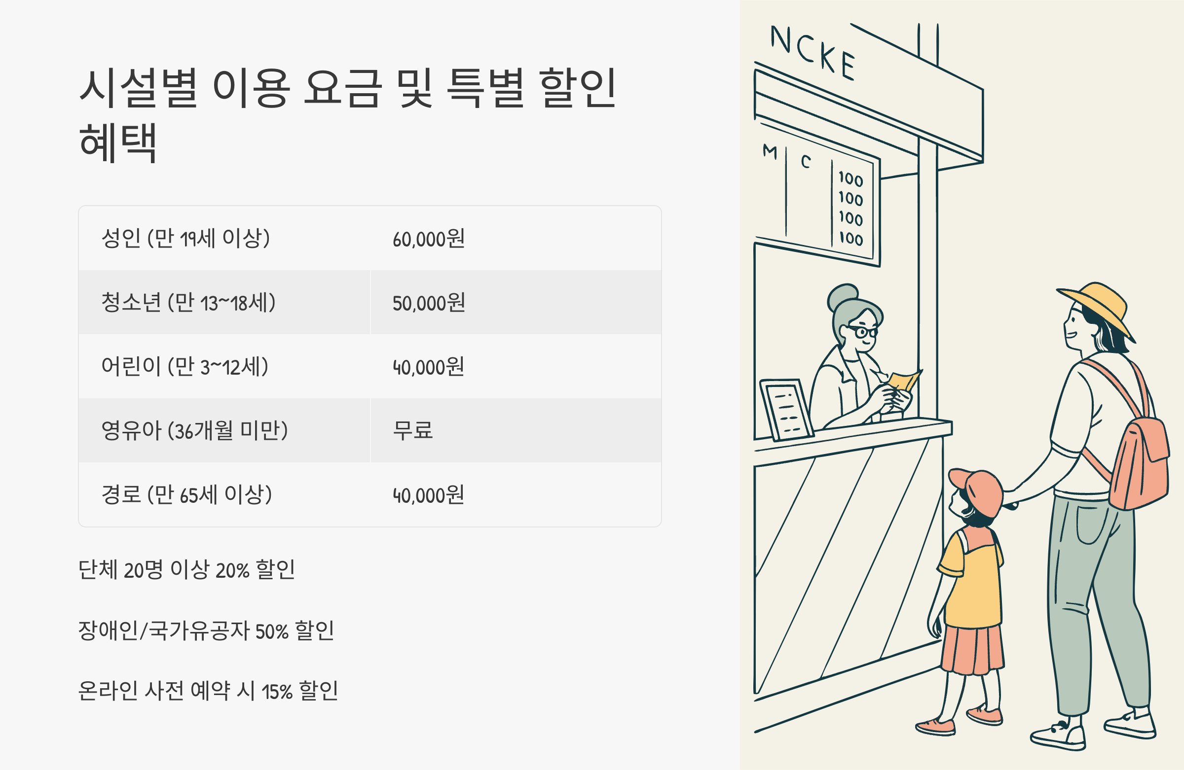 로 책정되어 있지만, 할인 예매처나 시즌패스를 활용하면 훨씬 저렴하게 이용할 수 있어요.