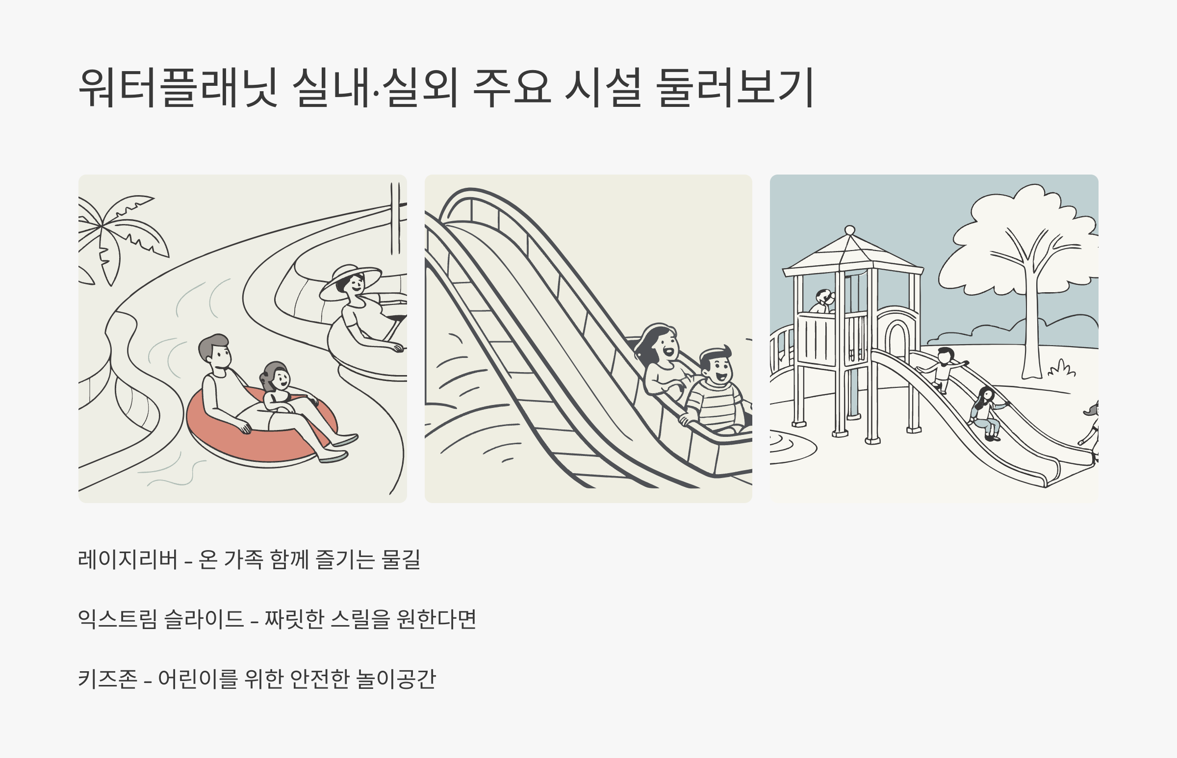“슬라이드와 유수풀만으로도 입장료 아깝지 않다는 후기들이 많아요. 어린이부터 어른까지 다 만족하는 드문 워터파크예요.”