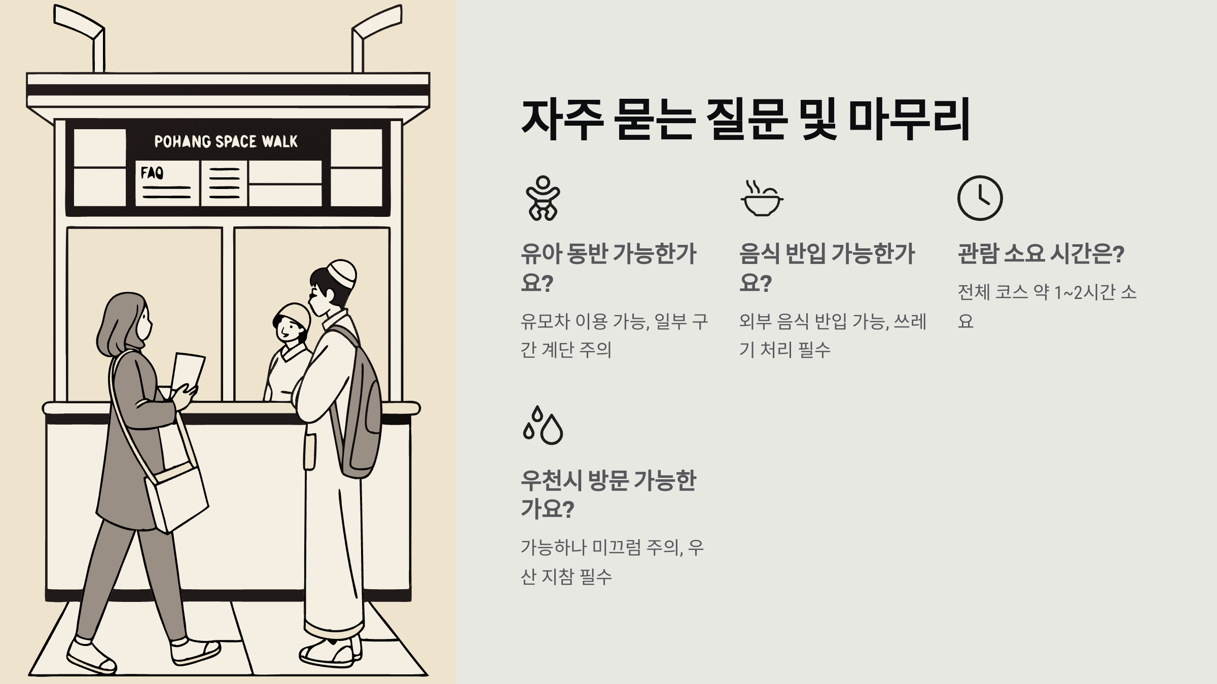 2. 비나 강풍이 불 경우 운영이 중단될 수 있어요. 방문 전 포항시 공식 채널이나 블로그 후기 등을 참고하면 좋아요.