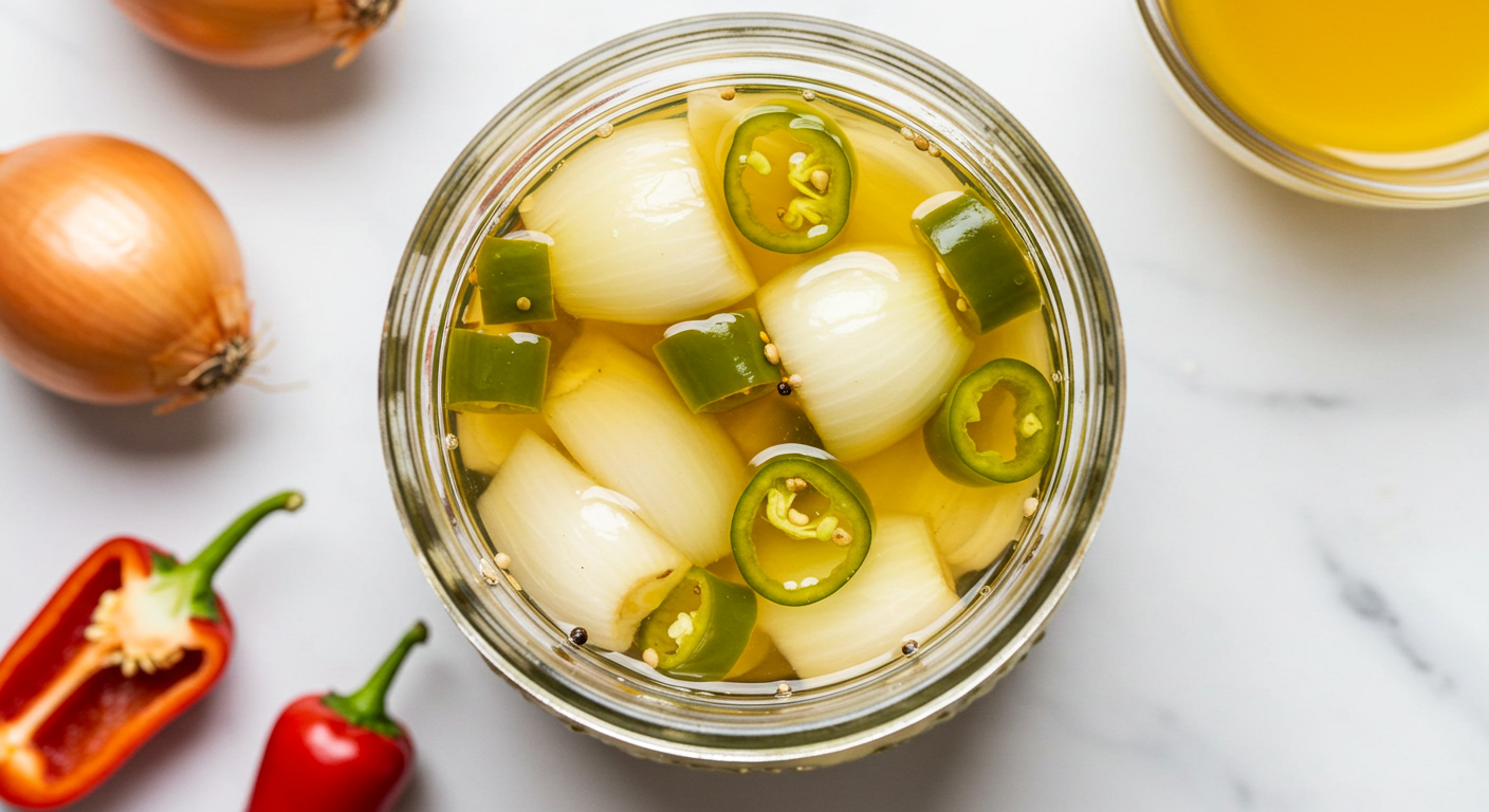 전문가 팁: 끓이지 않는 양파장아찌의 핵심은 간장물을 붓기 전에 설탕을 완벽하게 녹이는 것입니다. 설탕이 제대로 녹지 않으면 장아찌의 맛이 불균형해지고 보관 중 변질의 우려가 있습니다. 간장, 식초, 물, 설탕을 넣은 뒤 거품기로 충분히 저어주거나, 소량의 미지근한 물에 설탕을 먼저 녹인 후 다른 재료와 섞는 것도 좋은 방법입니다.