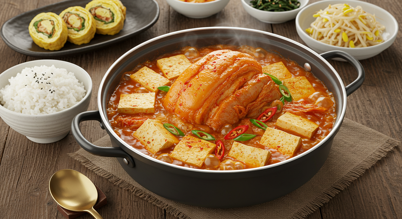 A. 부드러운 계란말이나 담백한 콩나물무침, 고소한 스팸 구이 등이 김치찌개의 매운맛을 중화시켜주며 훌륭한 궁합을 자랑합니다.