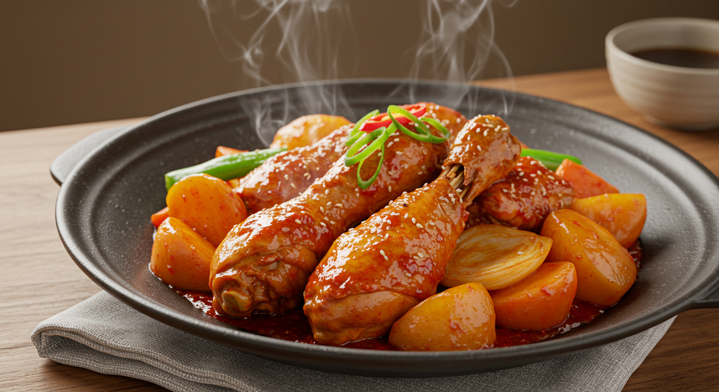"닭볶음탕의 깊은 맛은 단순히 양념의 문제가 아닙니다. 신선한 재료와 올바른 손질법, 그리고 섬세한 조리 과정이 어우러져야 진정한 맛을 낼 수 있습니다. 닭고기를 끓이기 전 식초물에 잠시 담가두는 것은 잡내를 제거하고 육질을 부드럽게 만드는 과학적인 방법이며, 이는 맛의 깊이를 더하는 중요한 단계입니다." - 이혜정 요리 연구가
