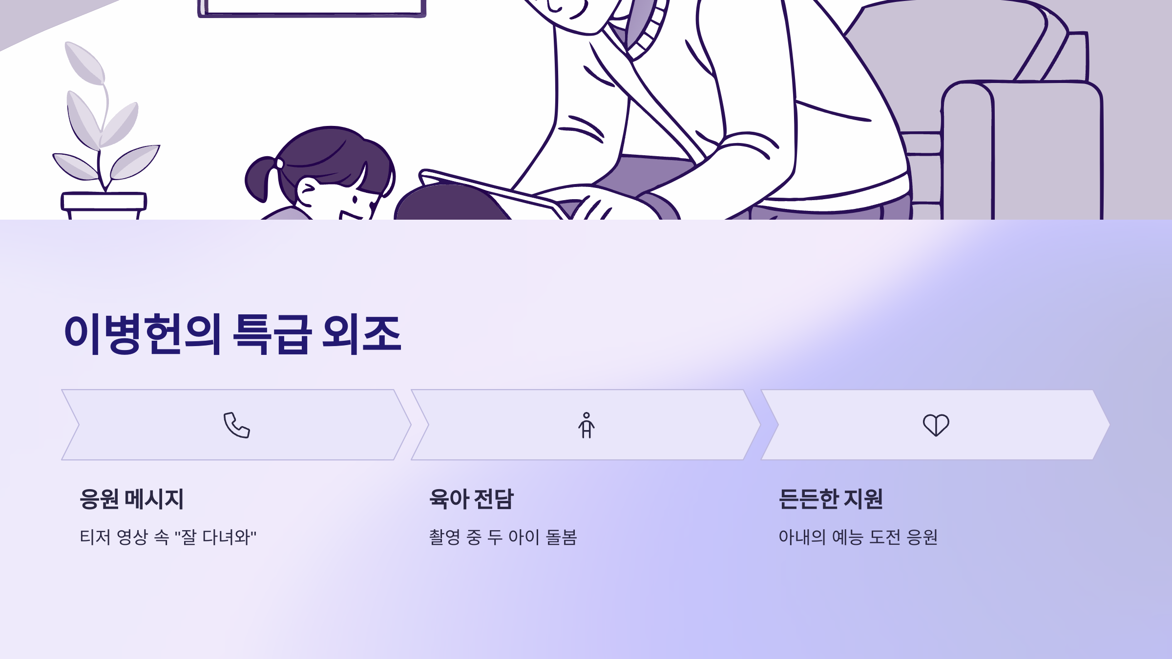 | 이병헌 | 비공식 지원 | 음성 메시지·육아 전담 |