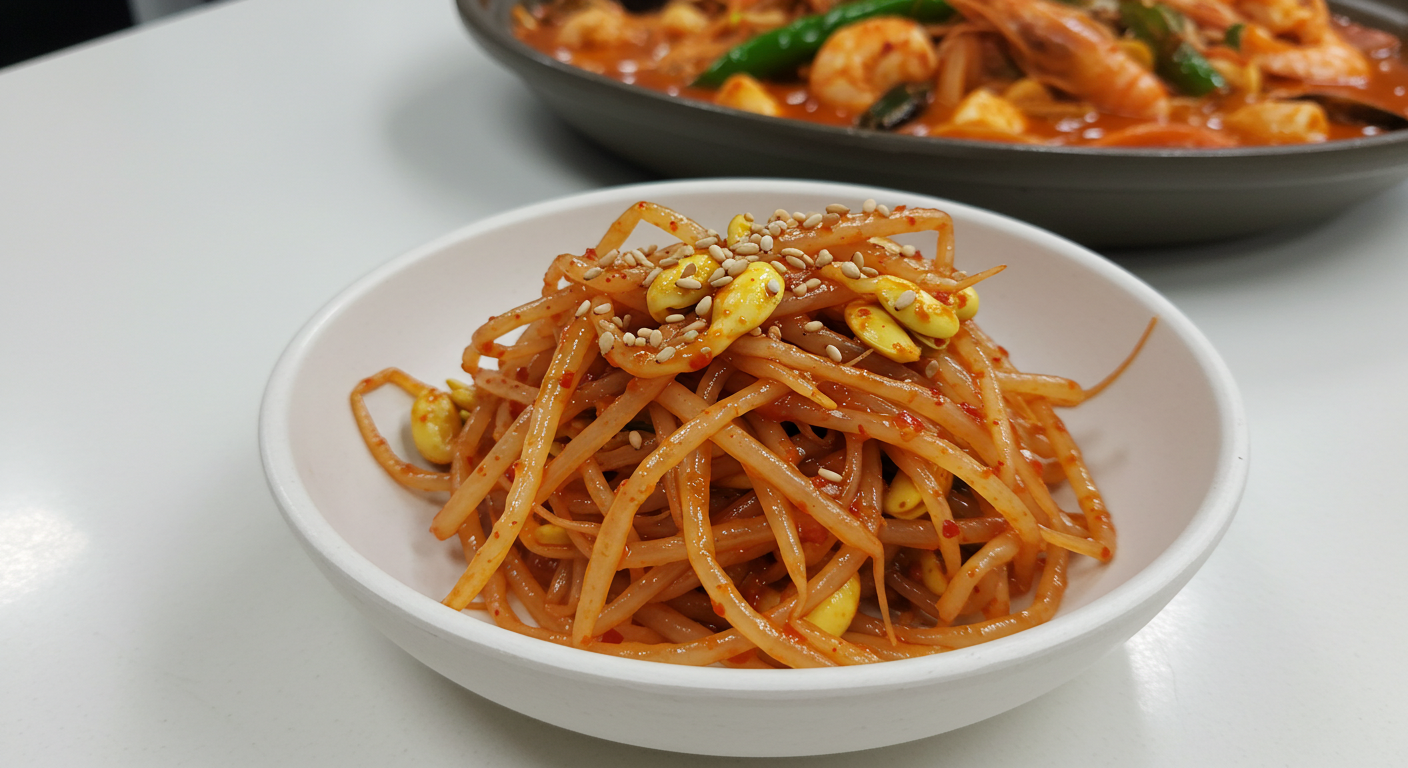 안녕하세요! 오늘은 찜 요리의 화룡정점, 찜용 콩나물무침 레시피를 가져왔어요. 늘 아구찜이나 해물찜 먹을 때, 집에서 만든 콩나물무침은 왜 그 맛이 안 나는지 궁금하셨죠? 아삭함은 사라지고 물컹해지거나, 양념은 따로 놀고... 저도 수없이 실패를 경험했었는데요. 이제는 걱정 마세요! 오늘 알려드리는 특급 비법만 알면, 어떤 찜 요리에도 찰떡같이 어울리는 완벽한 콩나물무침을 만들 수 있답니다. 실패율 0%에 도전하는 이 레시피, 지금 바로 시작해볼게요!