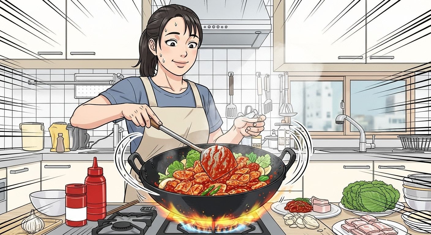 주말 저녁, 갑자기 매콤~한 메뉴가 당기는데 냉장고를 열어보니 두툼한 생고기는 없고 냉동실에 얇게 썰린 삼겹살, 일명 냉삼만 보일 때 다들 있으시죠? 매번 고추장 넣고 볶아도 식당에서 먹던 그 불맛과 쫀득함이 안 나와서 실망하셨다면 이제 그 고민은 끝이에요.
