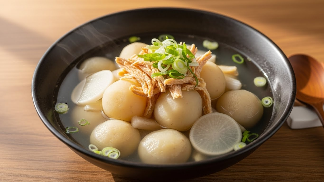 토란국을 끓일 때 다시마 한 조각을 함께 넣고 끓이면, 다시마의 알긴산 성분이 토란의 유해 성분을 중화시키는 데 도움을 주고 국물 맛을 더욱 개운하게 만들어 줍니다.